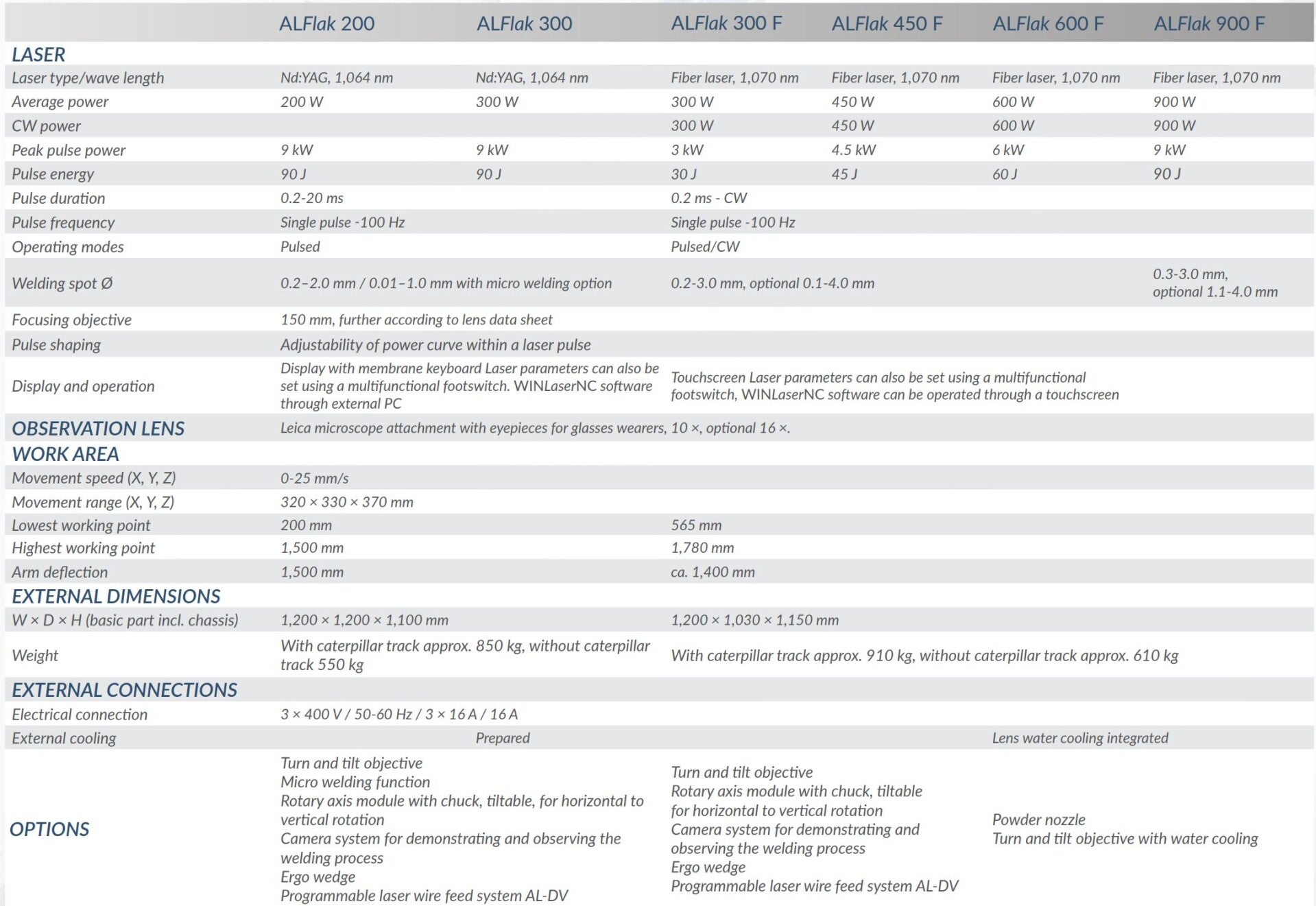 Da linha ALFLak existem versões de 300 a 900 W com tecnologia de fiber laser. Caso tenha interesse numa cotação deste equipamento, favor entrar em contato com o nosso departamento comercial.