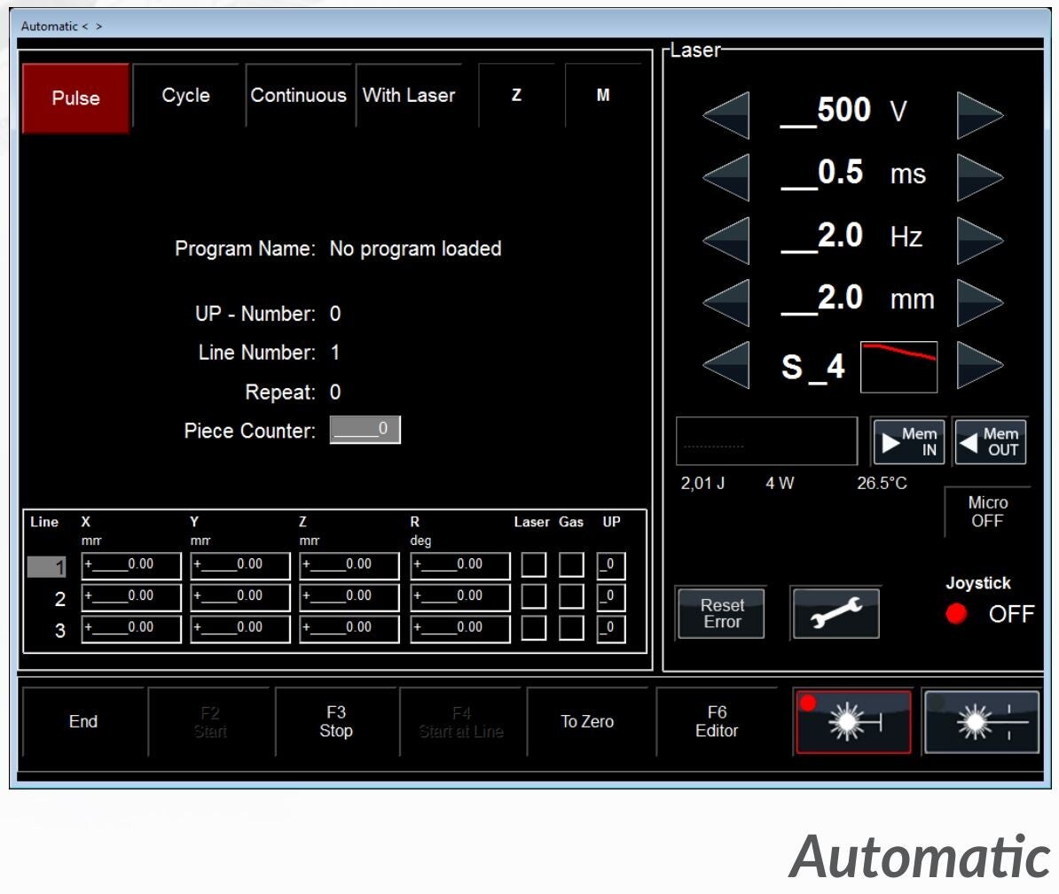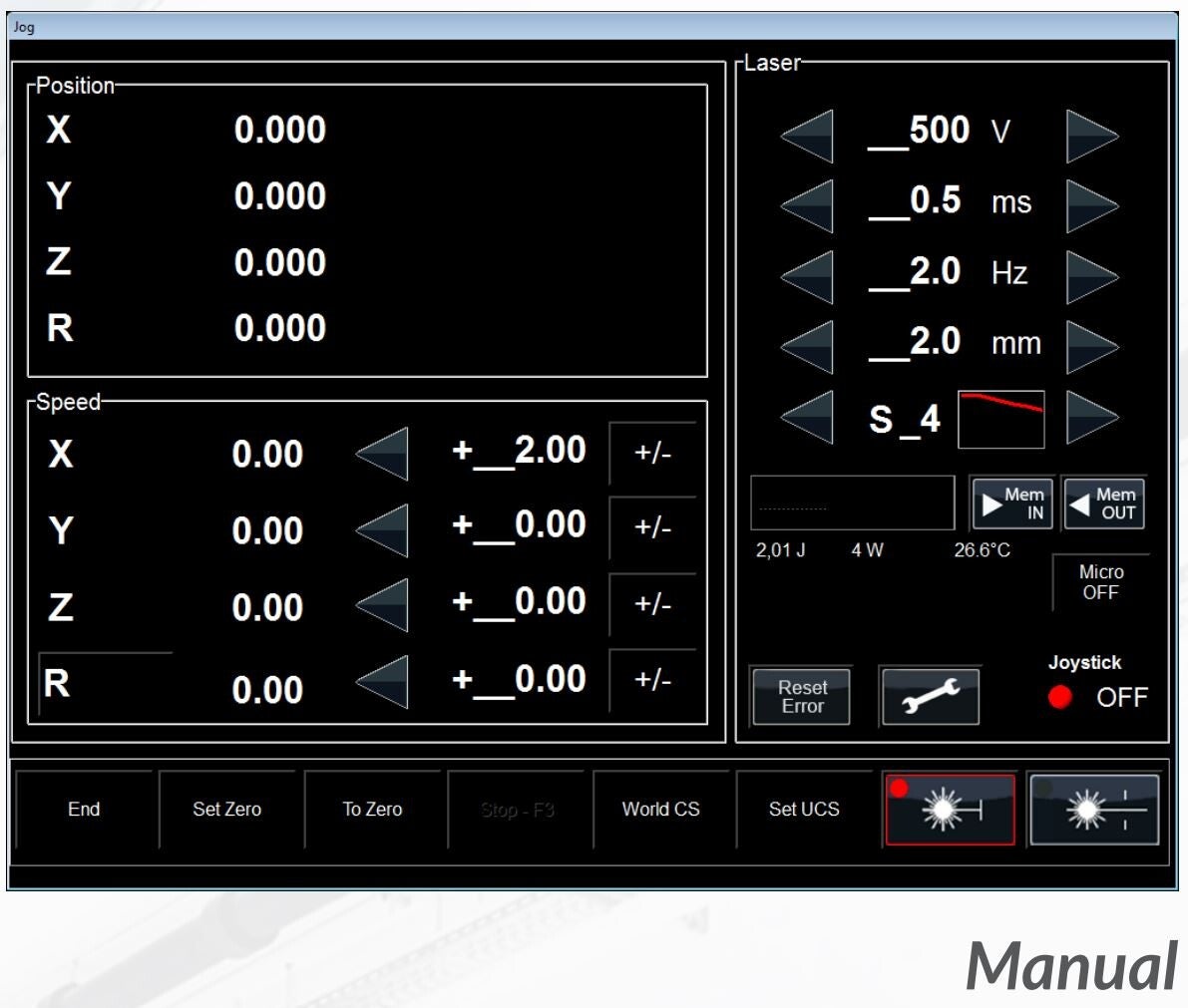 - Velocidade de trabalho (X, Y, Z) 0-25 mm/s