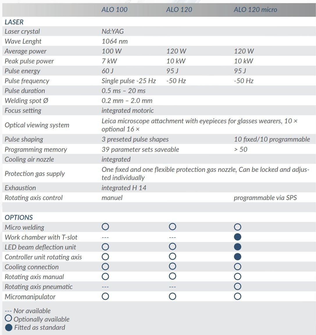 A linha ALO da Alphalaser são unidades fechadas para soldagem manual. Existe uma série de periféricos os quais possam ser acrescentados para facilidade da soldagem. São maquinas com ótima relação de custo x benefício.